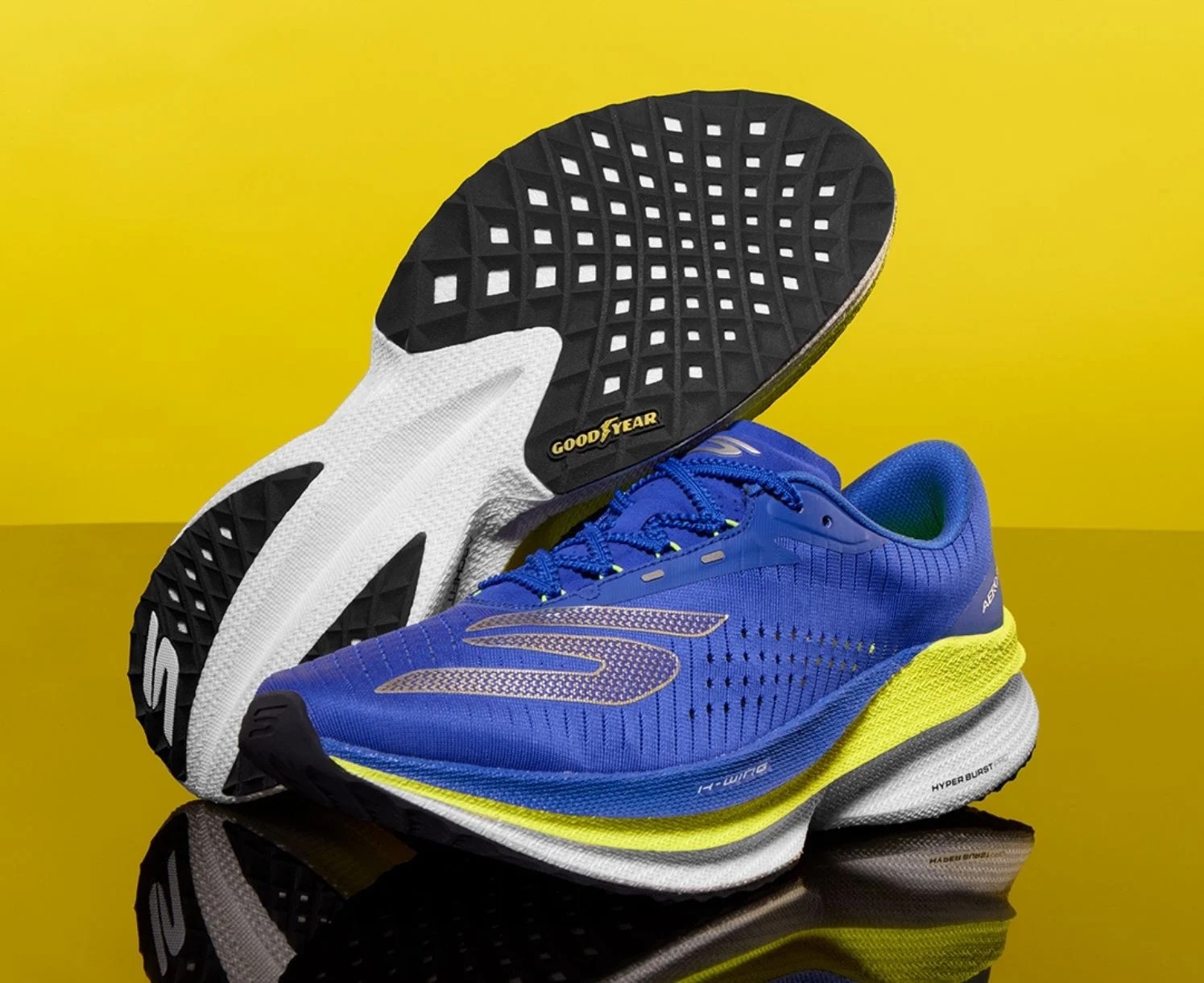 Der brandneue Skechers AERO Razor™ knüpft an die innovative Tradition der Razor-Reihe an und bringt die preisgekrönte Super Critical® Schaumstofftechnologie in die hochmoderne AERO-Kollektion. Dieser leichte, funktionale Laufschuh vereint Geschwindigkeit und Komfort und sorgt für deine bisher dynamischsten Läufe – er begleitet dich vom täglichen Training bis hin zu intensiven Trainingseinheiten. Das Modell verfügt über ein außergewöhnlich atmungsaktives Obermaterial aus Funktionsmesh mit gezackten Schnürsenkeln, eine extrem reaktionsfähige HYPER BURST PRO™-Zwischensohlendämpfung mit HYPER ARC® Rocker-Technologie, ein stoßdämpfendes Arch Fit® Innensohlensystem und einen patentierten H-Wing™ im Vorderfußbereich für explosive Energierückführung – und all das auf einer langlebigen Goodyear® Performance-Laufsohle.